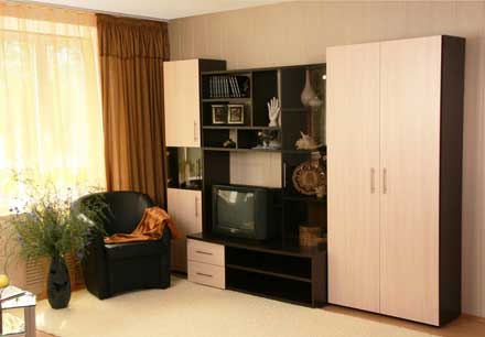 Комплект корпусной мебели для гостиной «Лира». Набор мебели для гостиной из ЛДСП. Мебельная стенка «Лира» поможет рационально распределить пространство вашей гостиной. В ней найдется место для посуды, одежды, белья и небольшой библиотеки. Производство: ООО «Карат-Е» г.Екатеринбург. Цена 19 160 руб.