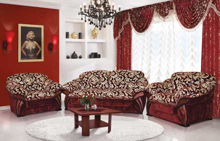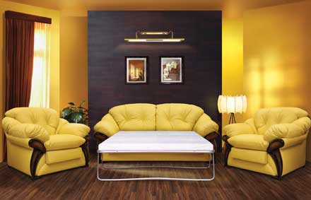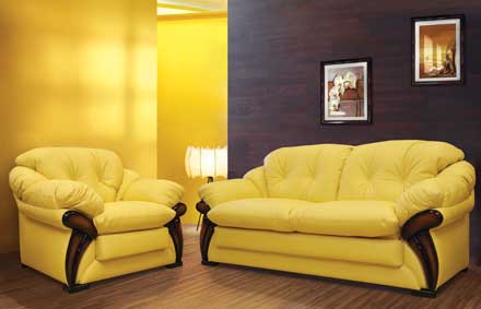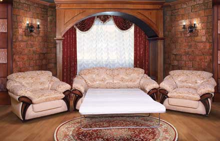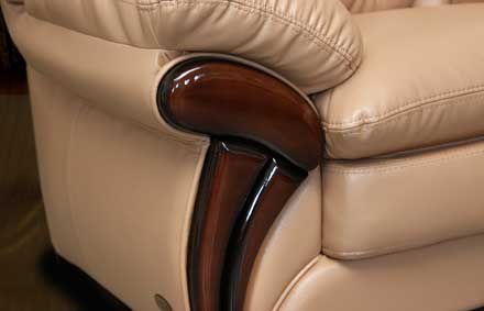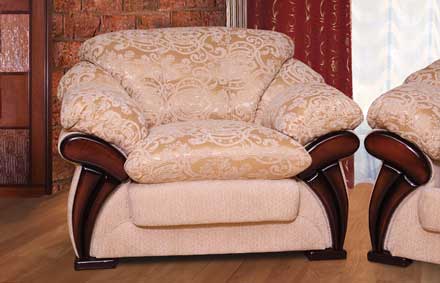 Размеры дивана и кресла   Технические характеристики (в коже) Механизм трансформации – «mixotoile» (гостевой вариант). Каркас изготовлен из фанеры березовой, березы, сосны, ДВП, ДСП. Сиденья и спинка изготовлены из контурного пенополиуретана 45 плотности и холлофайбера. Декоративные изделия выполнены из березы с полиэфирным покрытием.